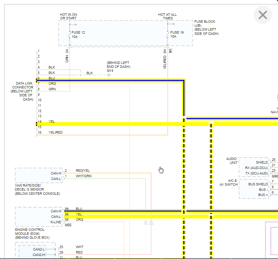 CAN (Controller Area Network) is a serial communication line for real time application. It is an on-vehicle multiplex communication line with high data communication speed and excellent error detection ability. Many electronic control units are equipped onto a vehicle, and each control unit shares information and links with other control units during operation (not independent). In CAN communication, control units are connected with 2 communication lines (CAN H line, CAN L line) allowing a high rate of information transmission with less wiring. Each control unit transmits/receives data but selectively reads required data only.