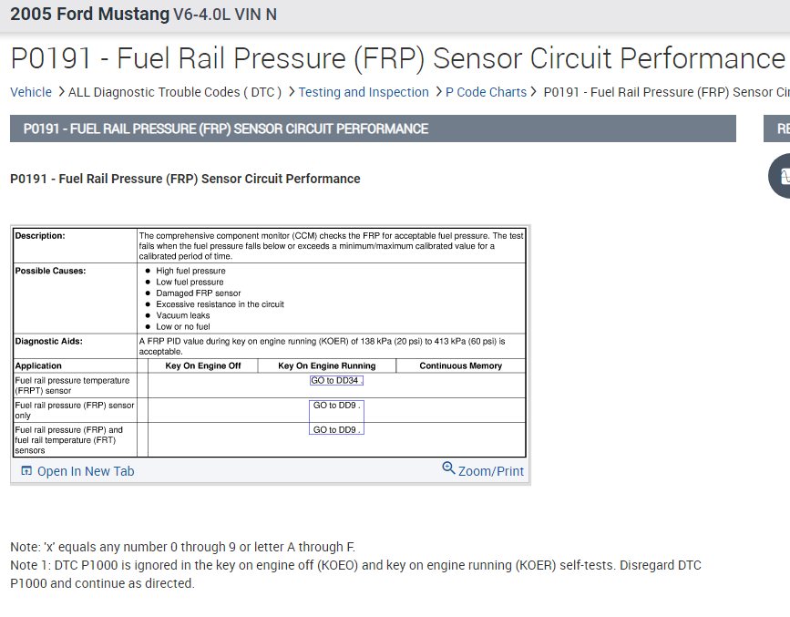 P0191: Fuel Rail Pressure (FRP) Sensor Circuit Performance.