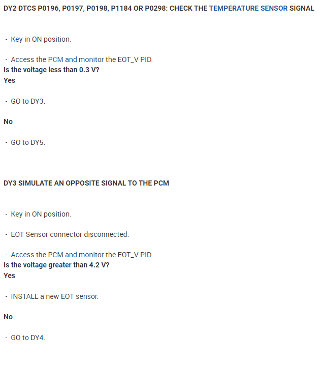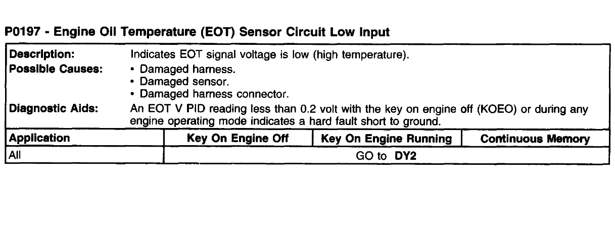 P0197: Engine oil temperature sensor circuit low input.