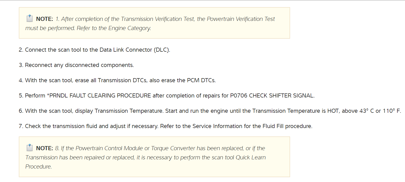 I have included the reset procedure for the transmission that must be performed after the throttle Bore cleaning to return to normal operation. Please get back to us with what you find out.