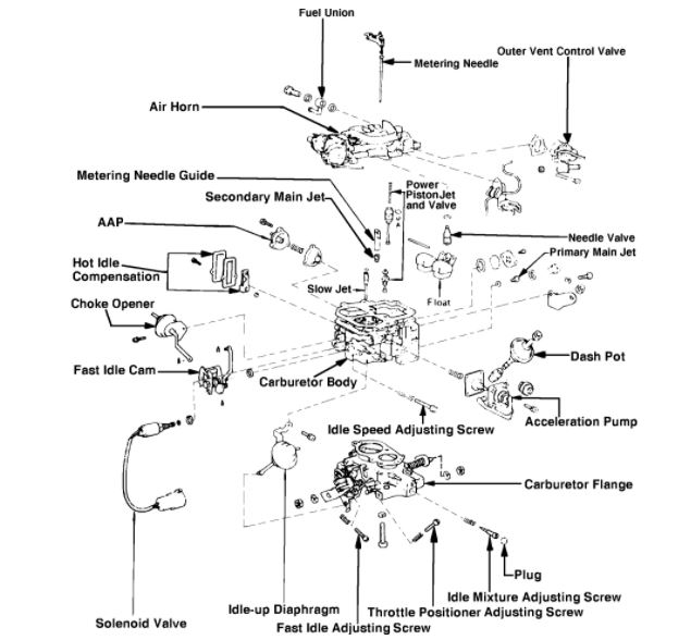 3. Loosen and remove fuel cut solenoid by rotating carburetor body to complete air horn removal.
