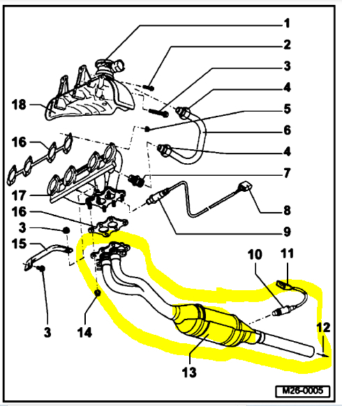 The catalytic converter is mounted via a down tube to the exhaust manifold. See pic below. However, there are several different options as far as engine size. I need to know which one you have so I can get you the correct information.