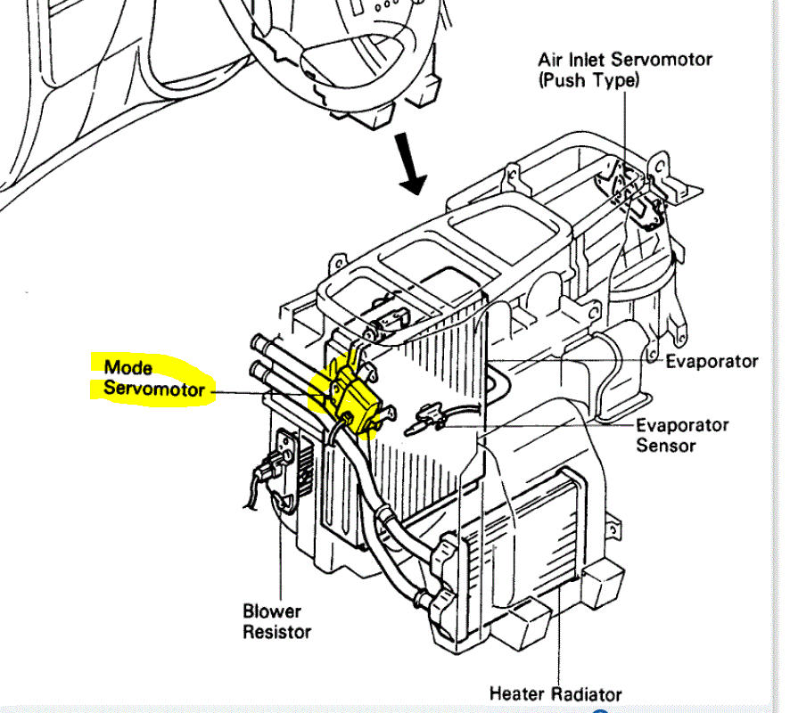 Because of the model year, I have very limited pics of the unit. What I attached above is the HVAC box. It contains the heater core and the different control doors, such as the mode door.