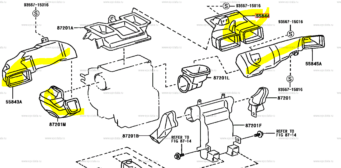 I was able to find a pic for a slightly newer one and have attached it below. I highlighted the ducts related to the center vents.