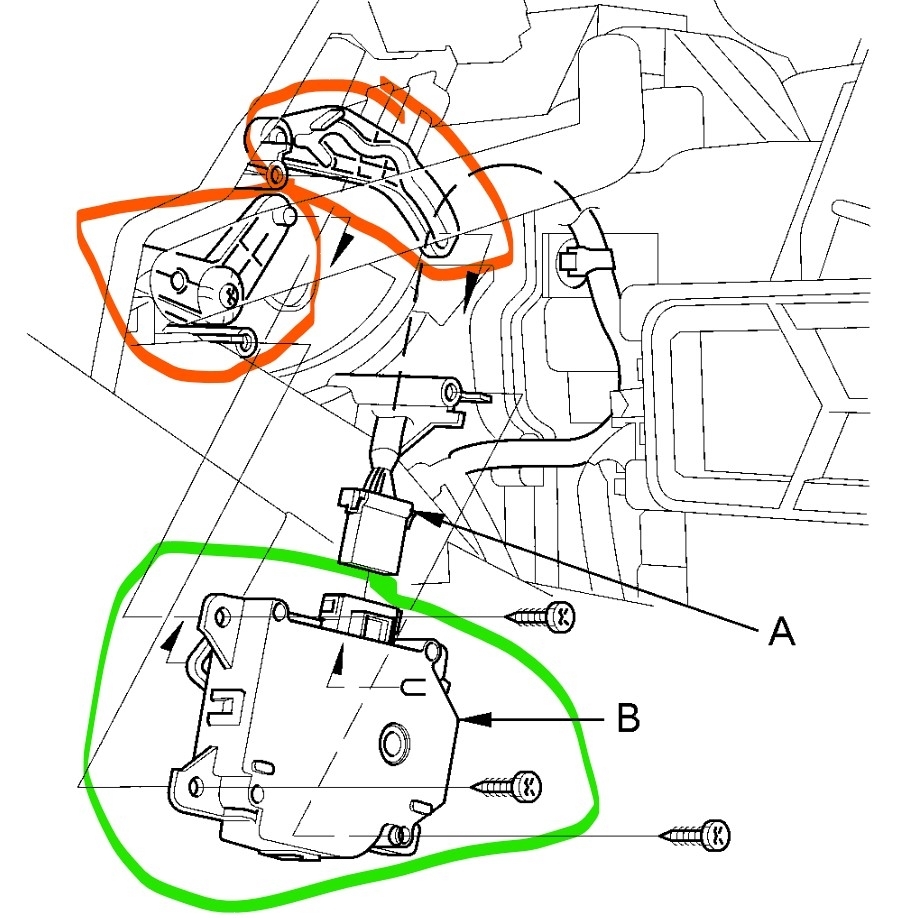The other item is the pin that moves the linkage breaking off. If you are handy with a drill that can be repaired by drilling through the arm and cutting a nail down and epoxying it in place as a replacement, or just visit a salvage yard and get a good one. If the actuator itself is the issue, unplug the wire connection and then remove the screws, test the linkage and reverse the process to install the new one.