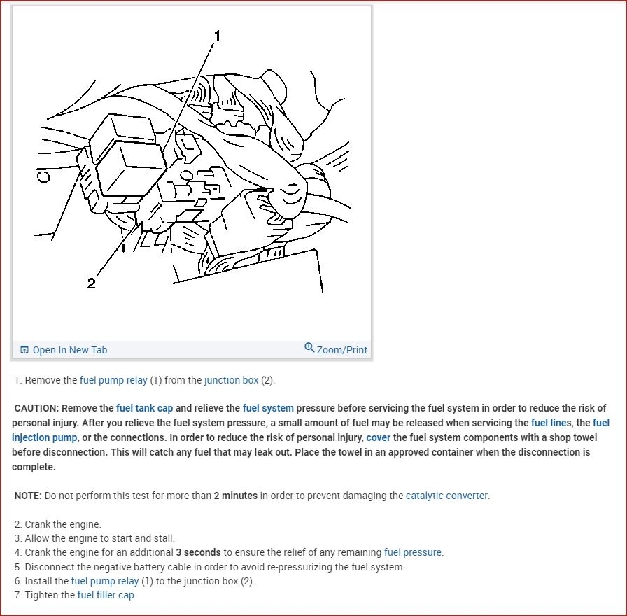 4. reconnect the fuel pump relay so that the fuel pump will energize