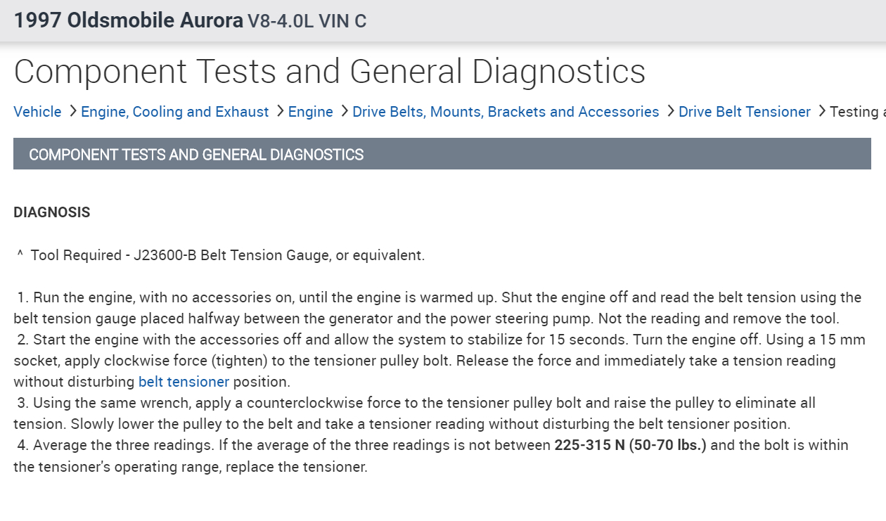 Okay, this could be a problem with the serpentine belt tensioner. In the diagrams down below I have included the factory guidelines for testing and inspection of your vehicle's serpentine belt tensioner. Please go through the guide and get back to us with what you are able to find out.