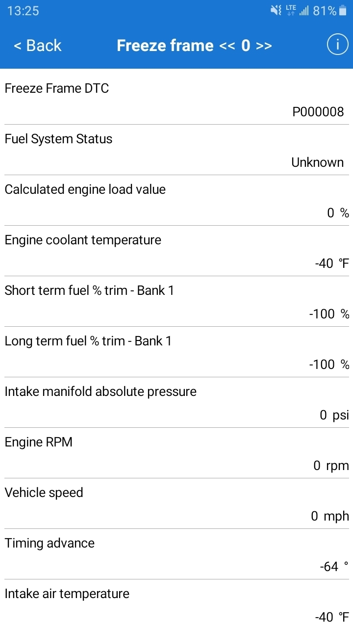 Is there anything else that could cause the issues that I am having with the abnormal/impossible Freeze frame values that I am getting? You didn't mention the P00008 code shown on the freeze frame, what does this code indicate/mean?