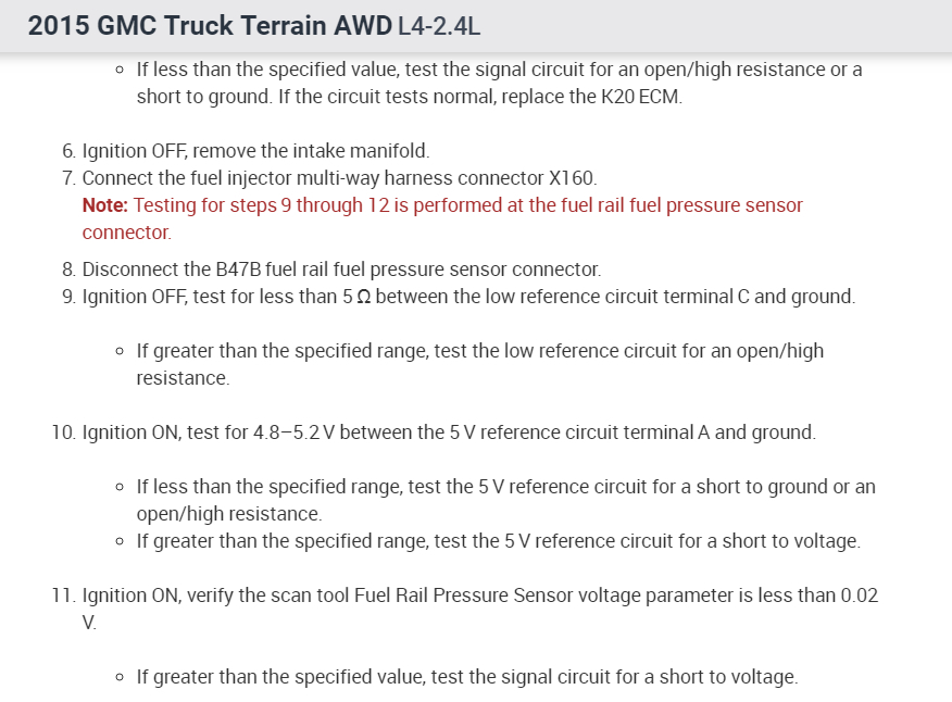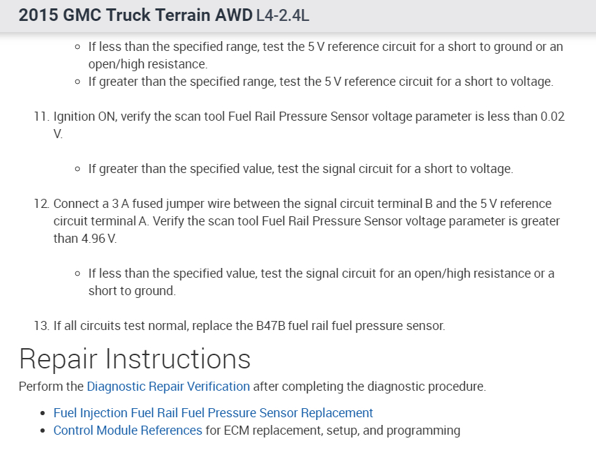 I am still receiving code p228c, through my research there is no fuel pressure regulator for the 2015 GMC terrain.