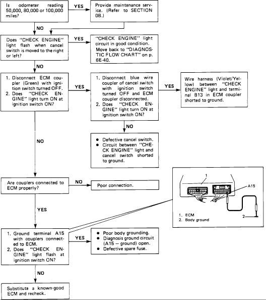 Thanks so much for the reply. When I put the fuse into the diagnostic slot, and turn the ignition switch on, the check engine light just stays illuminated. It fails to flash a code no matter what I do.