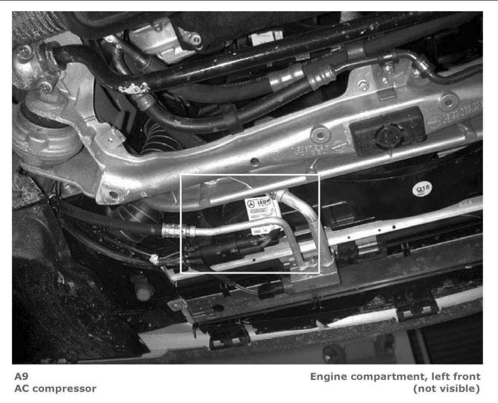 To access the compressor, you need to remove the splash panel under the vehicle's engine compartment. Before doing that, check wiring around the alternator drive belt and in the engine compartment. If you find no issues, then you should remove the slash panel under the vehicle so you can inspect that area.