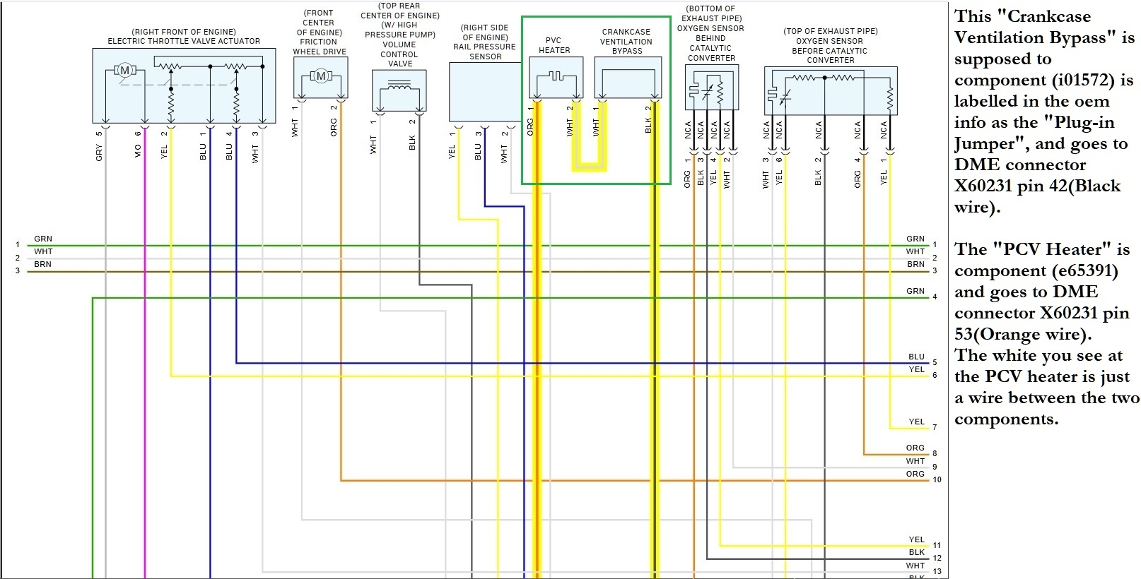 I just went.over all of the material and it's so helpful. Evidently the photo i sent you was the PCV Heater and CCHeater on the other side of the tube. But none-the-less it's the same white wire i been chasing and the info nails it.