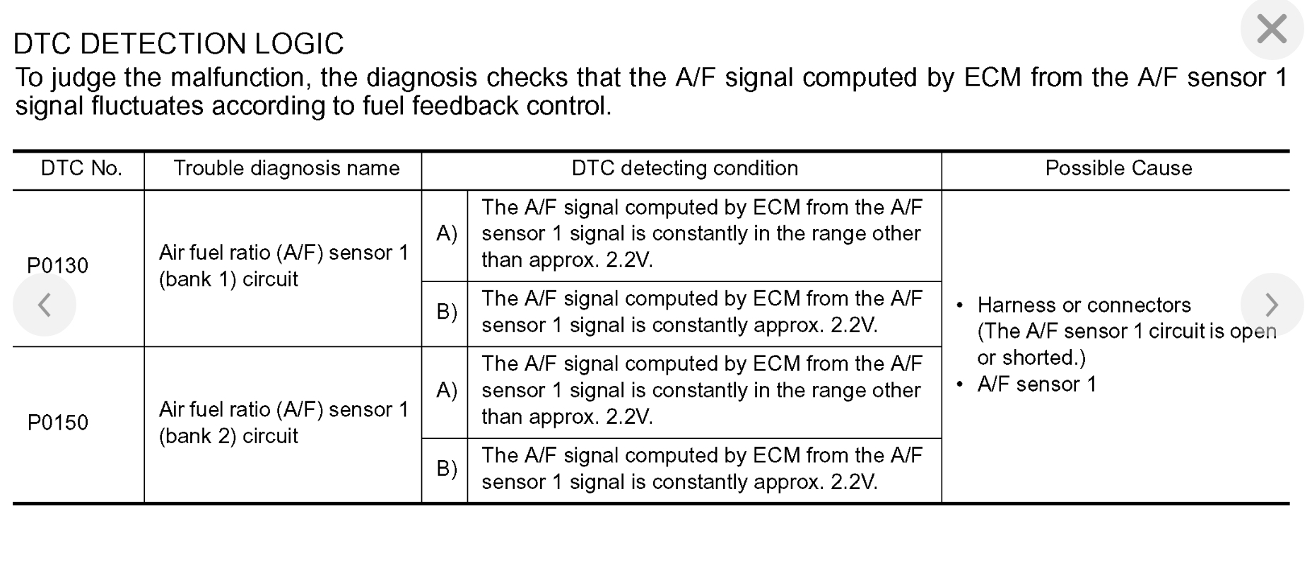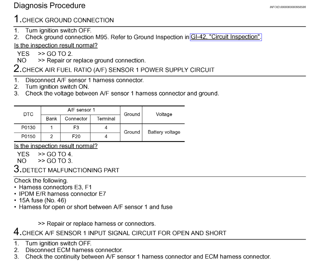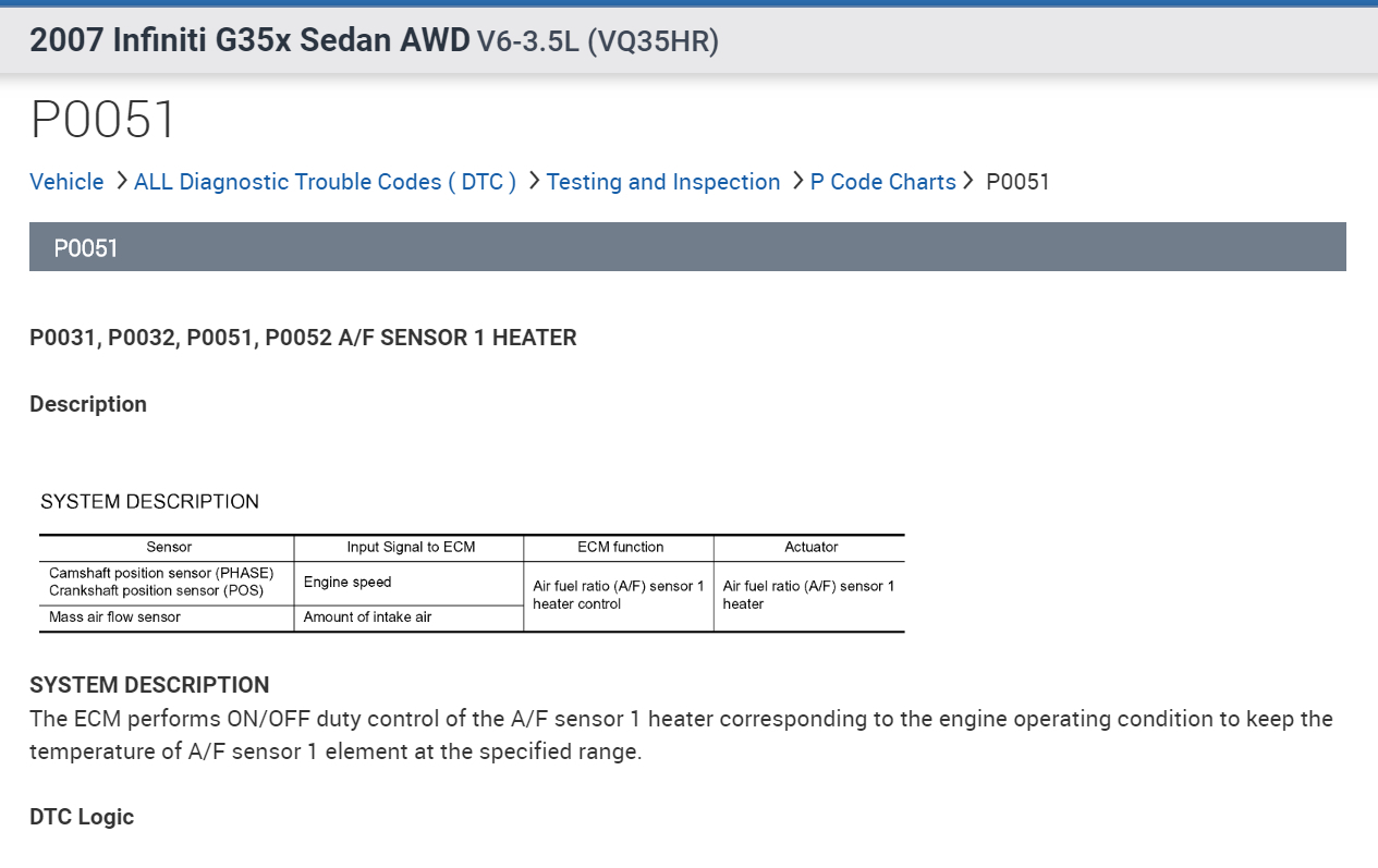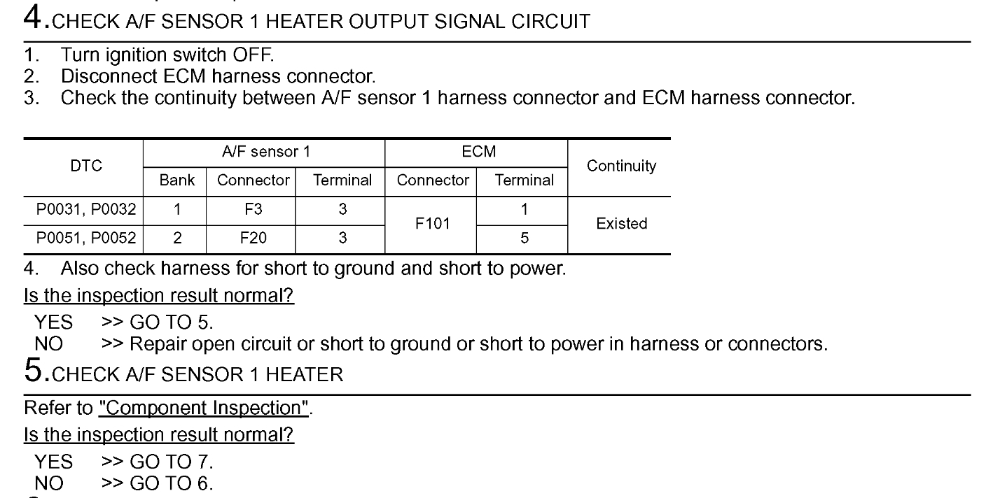 All three of these Direct Trouble Codes are related. They all deal with the bank 2 Air Fuel Sensor 1 or upstream sensor. By upstream we mean the one before the catalytic converter, or if you you follow the exhaust from the engine to the tailpipe, it's the Air Fuel sensor on top left of the engine. I have included in the diagrams down below factory diagnostic troubleshooting guides for all three DTC's. Please go through these guides and get back to us with what you find out.