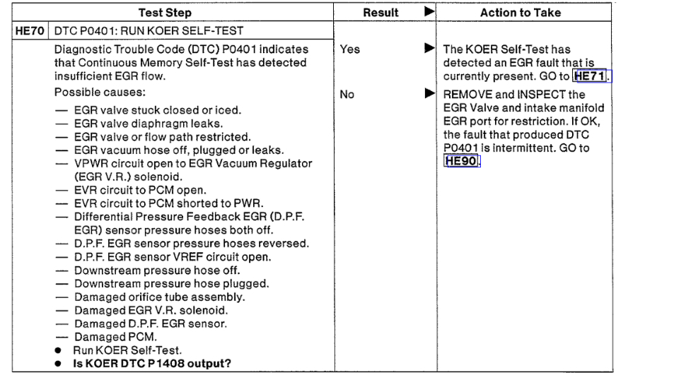 P0401 insufficient EGR flow detected.