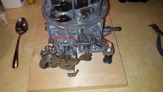 Anyway the first major problem is to get the car running normal. Then it has to be able to cool itself again. I have a couple ideas in mind but first off this carb has to get done and then I have to go the through the plugs and probably replace them or at least clean them because this event is what caused all this carbon fouling and the last thing I want to do is put the carb in only to have it explode yet again under the hood and be back to square one. I know the snorkel air cleaners used to put what looked like a sieve in the snorkel to stop explosions although how that worked I don't know. There is also the A/C solenoid method to shut the choke plate or maybe I can fool the electric choke into closing the plate?