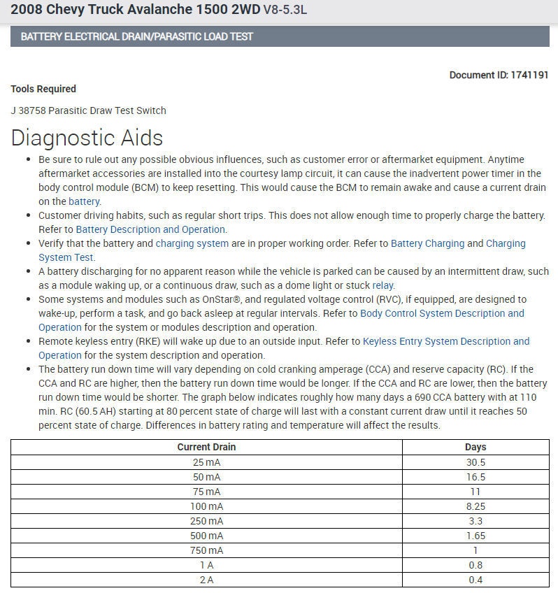 You will have to use a multimeter to see what is the current drain on your battery. This vehicle should have 25 milliamp or less parasitic draw.