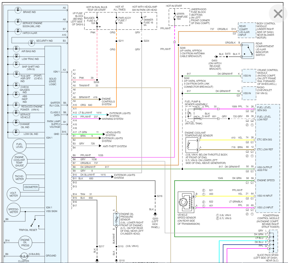 So, we need to use the wiring diagram below to check the fuses related to the cluster, specifically Fuse 9 in the IP fuse block as this is directly for the gauges.