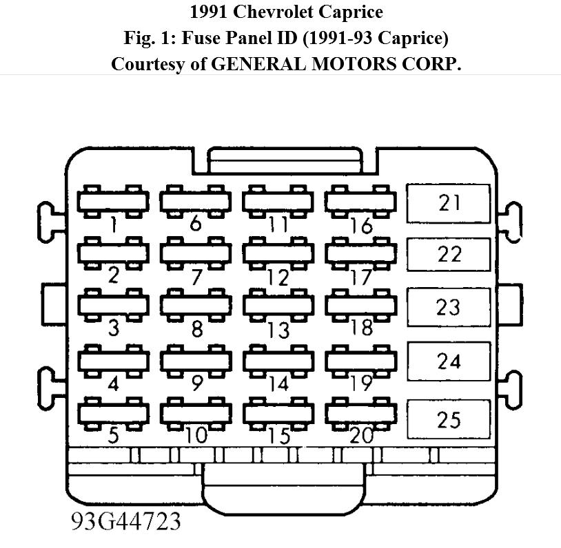 4 - 10 Amp (Exc. 1993 Wagon); 25 Amp (1993 Wagon) Bose Radio Amplifier (1991 Caprice), Electronic A/C 1992 Caprice), Electronic Level Control (10 Amp 1993 Sedan), Electronic Level Control (25 Amp 1993 Wagon)