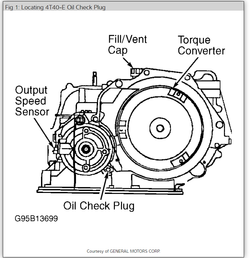 There is a small bolt/plug in the transmission above the pan that needs to be removed for checking fluid level. The fluid will run out if it's overfilled. The transmission needs to be at room temperature or a little warmer to check the level.