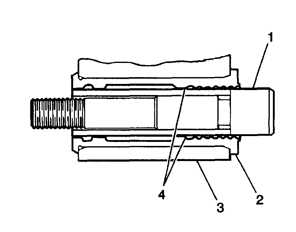 15. If the bolts are rusty, corroded, and/or damaged, replace the bolts (1) and replace the bushings (2).