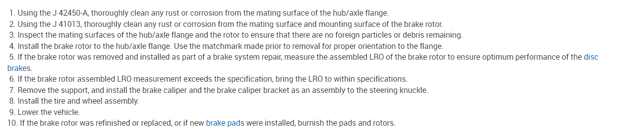 If you look below, I included the directions for the removal and replacement of the rotors. Keep in mind, this is the perfect time to replace brake pads and to clean and lubricate the caliper slide pins.
