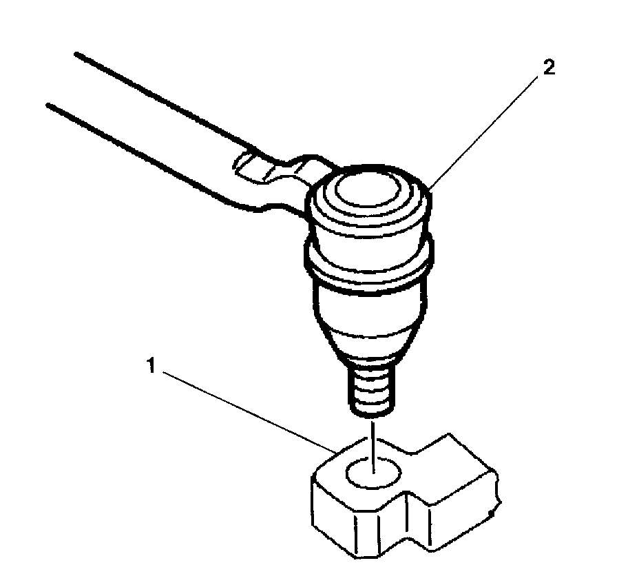 2. Install the outer tie rod assembly (2) to the steering knuckle (1).