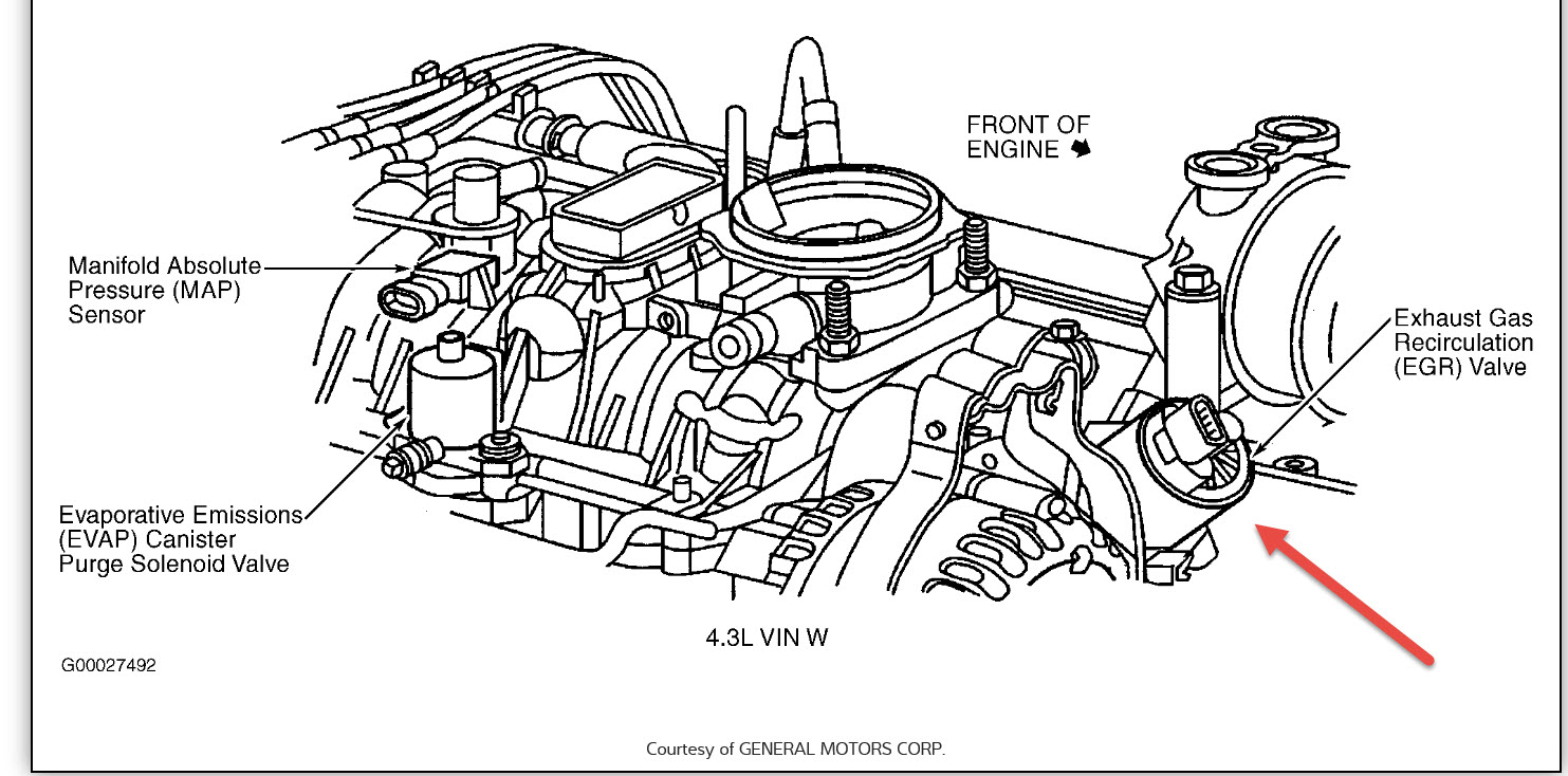 I have to change my EGR valve on my S10 4x4 4.3L Vortec FI and I cannot locate the EGR Valve for the life of me. I found it on my other S10 that is 2 years younger but I can't find it on the 2002... Can you help at all???