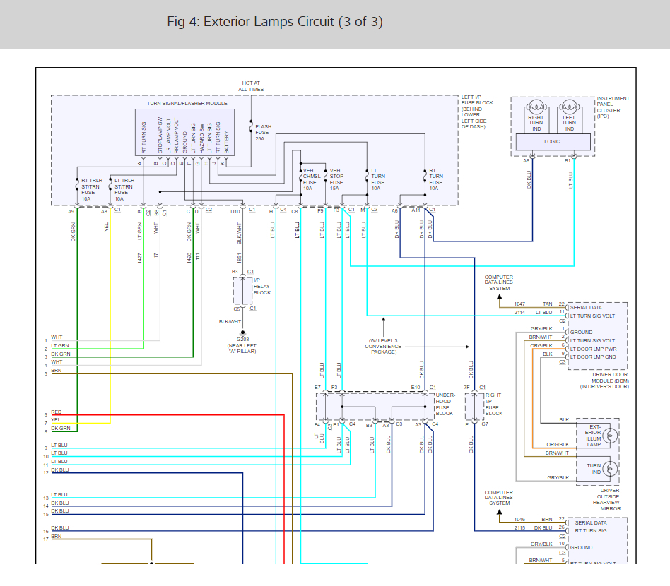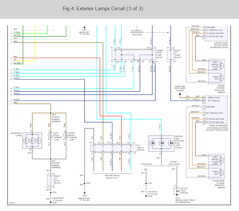 This wiring is at the rear of the vehicle? I have some tables of circuit description, It would be advised to verify with a test lamp before assuming the circuits are what is listed.
