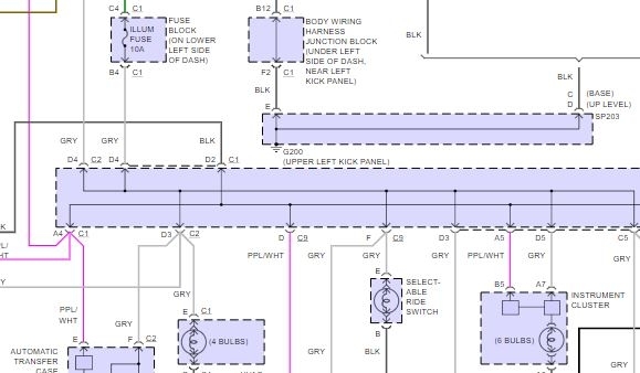 I'm trying to find the correct fuse that goes to the instrument cluster, radio/climate control readout and door panel control lights. At night, the entire cab is dark. This sounds like a fuse, but I can't seem to find the correct one. Any suggestions?The next day, this problem seemed to take care of itself. I checked all the fuses and didn't find any bad ones. When I started it up again, everything lit up just fine. Before, all the gauges worked, but nothing was illuminated.