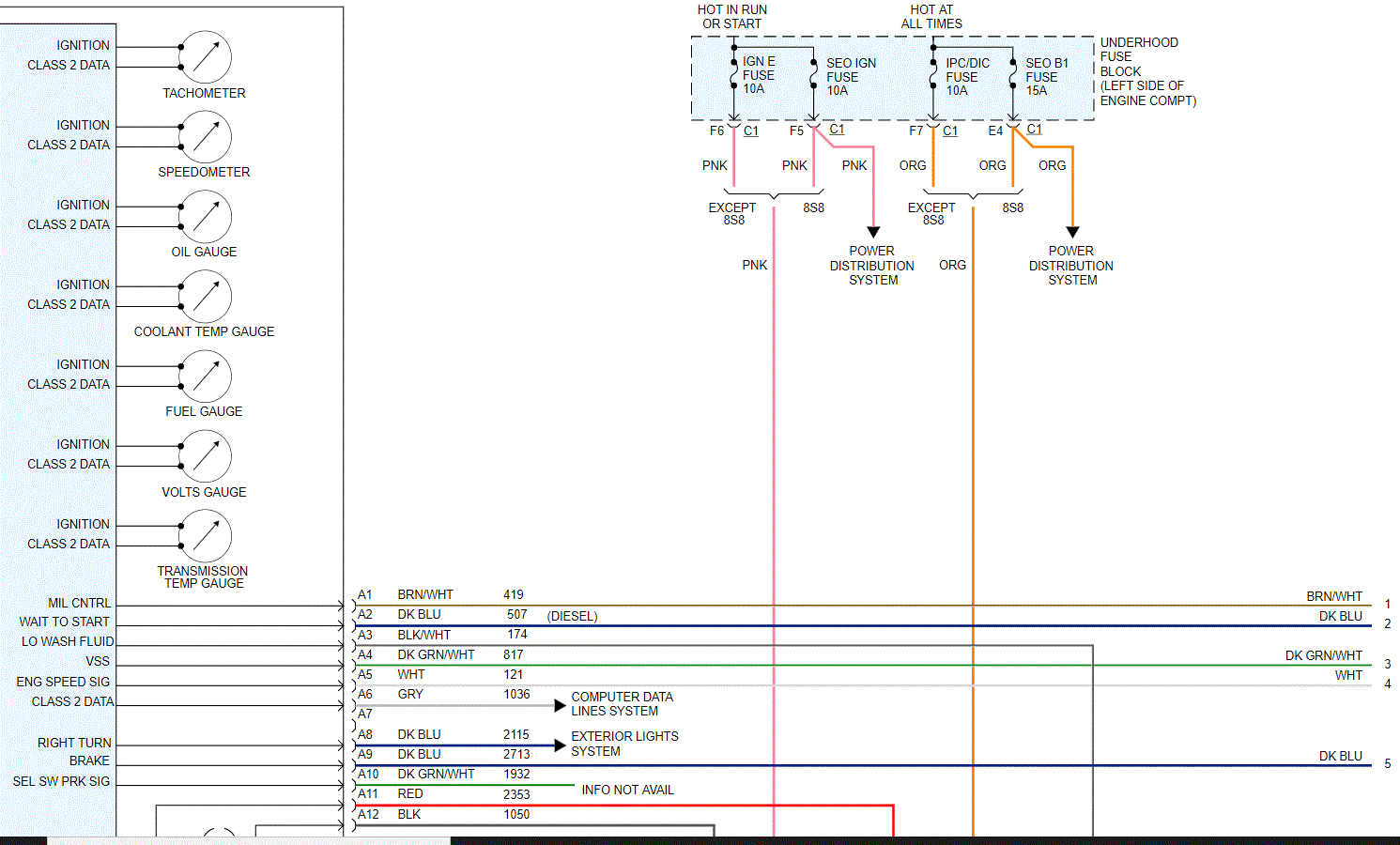 I attached two wiring schematic pics for the speedometer/IP. I highlighted the ground I would check just to make sure it is tight, not damaged, and not corroded. The ground is on the left side near the kick panel/A pillar. I had to cut the pic in half to make it readable, but I did overlap them so you can easily follow them.