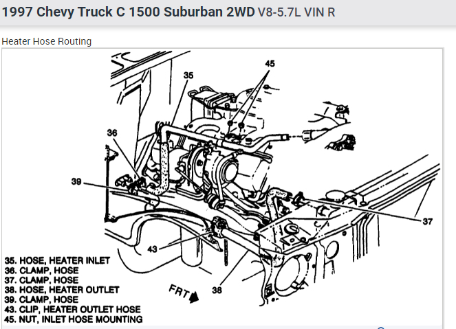 I need a diagram of the routing for the cooling lines. I have a leak and the plastic connections all broke when I attempted to remove them. I now need a diagram showing the routing around the heater valve.