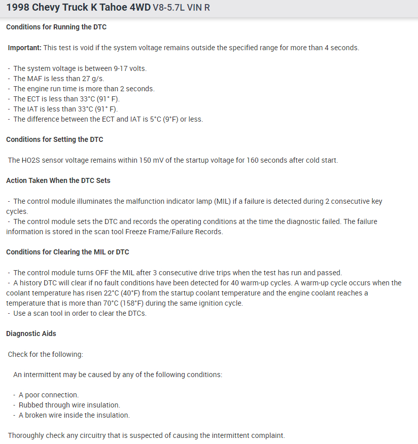 The heated oxygen sensor (HO2S) is a sensor designed to create a voltage relative to the oxygen content in the engine exhaust stream. The control module supplies the HO2S with signal high and low circuits. When there is an issue with the circuit it can trigger that code.