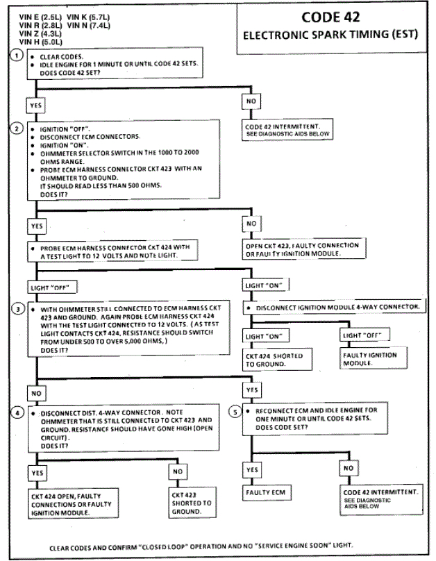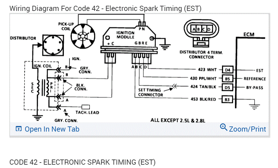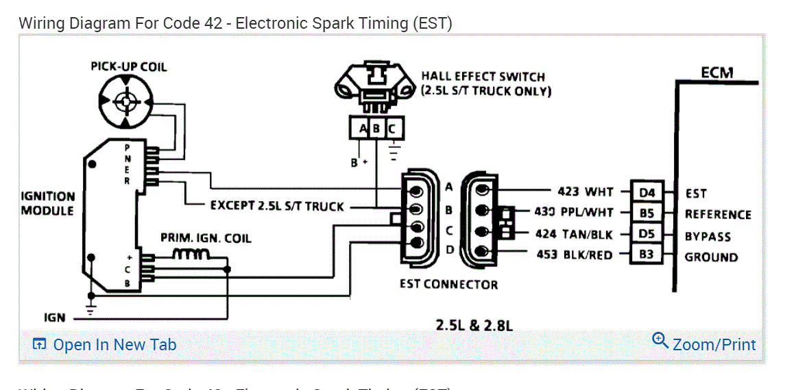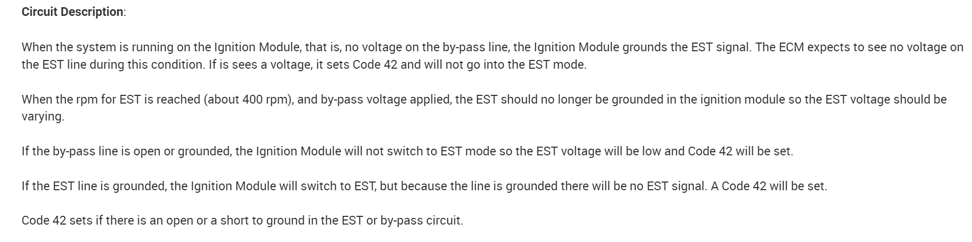 I recently purchased this truck and the engine was replaced with an engine that has 67K miles. The engine runs great until 15-20 miles down the road. When it gets nice and warm the engine sporatically loses power and turns on the Check Engine light. If I slow down the truck shuts off completely. It will refire but will shut back off until cooled down. I have changed the ignition coil, Wires, plugs, cap. I am completely lost on what other than the ECM it could be! The trouble code that is registering is 42. Any help would be appreciated!