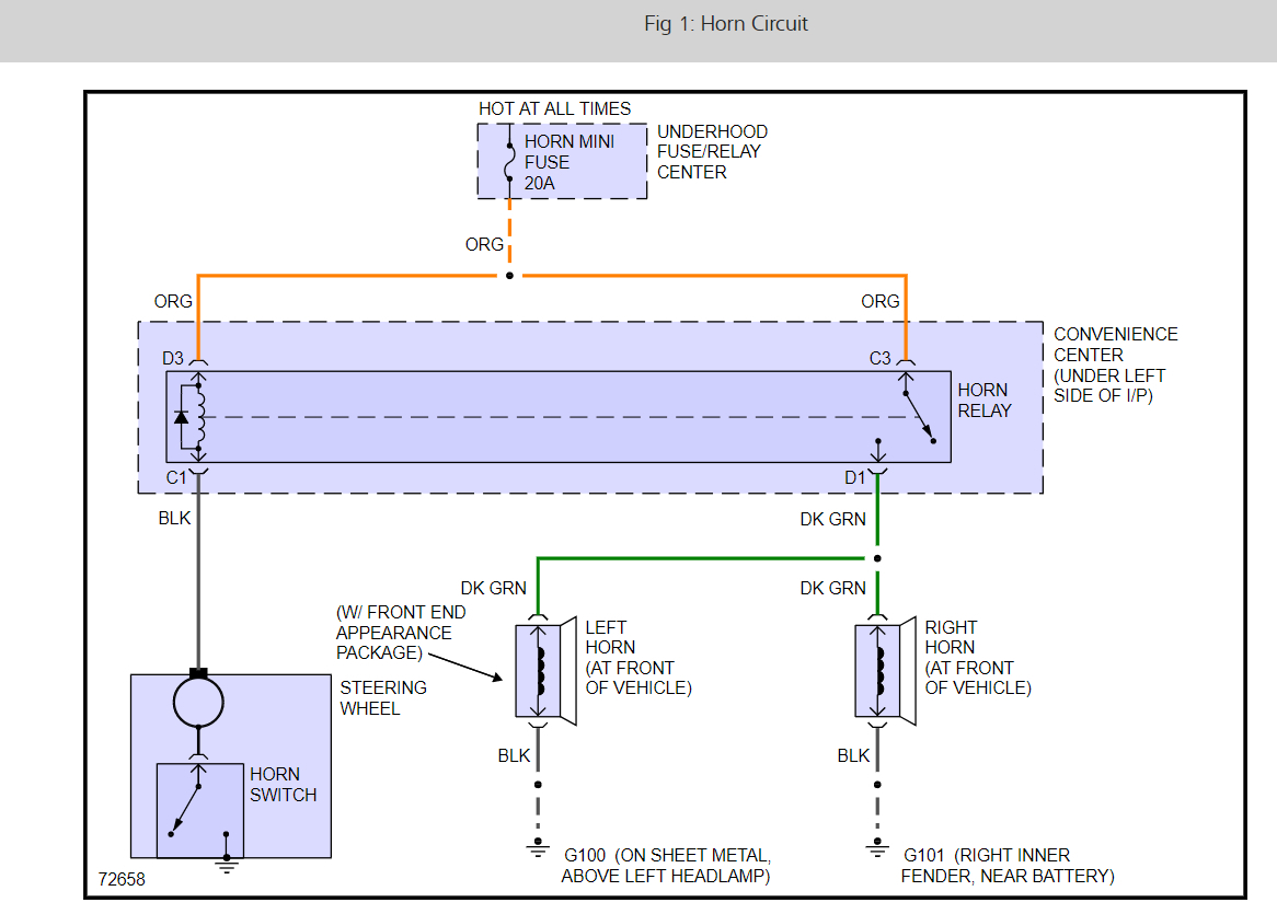 #2 horn inop?? gonna try fuse and relay first,,where is relay located and fuse location,,where is the horn located on truck,,and im guessing a green wire??? thanks for your time and replies,,have a great day...