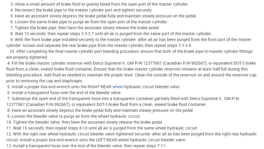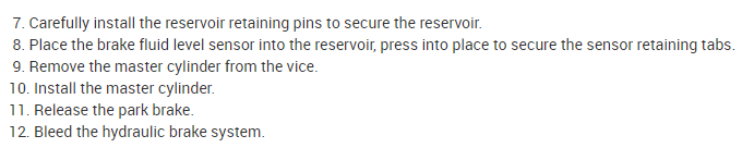 Here is the information you requested. Here are a few tutorials for you to view on how to replace a brake master cylinder and how to bleed the system after the repair has been made: