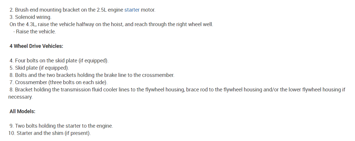 I have the vehicle listed above changed from 2.8 to a 4.3 v6 engine. It has sat for maybe 2 1/2 years and it was running fine when I parked it. I've cranked it and gotten it to run for a few days but it cuts off. It wasn't getting any gas through the line to the carburetor. I finally got that to work and now when I turn the key it doesn't do anything at all. So I take the starter out and test it and I think the solenoid is bad. When tested on one wire it will engage but won't spin and on the other side it will spin but won't engage. The starter will do both functions it just won't do them at the same time. Any suggestions?
