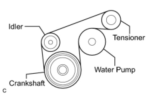 (1)Put the V-ribbed belt on every pulley except the tensioner pulley as shown in the illustration.