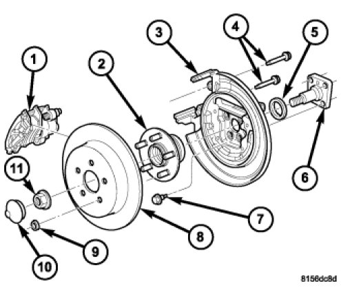 Vehicle Brakes and Traction Control Disc Brake System Brake Rotor/Disc Service and Repair Removal and Replacement Removal Rear Brake Rotor