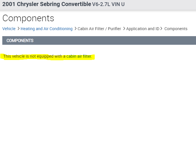 Trying to locate my cabin air filter 2001 Chrysler Sebring convertible lxi? Does my vehicle have one?