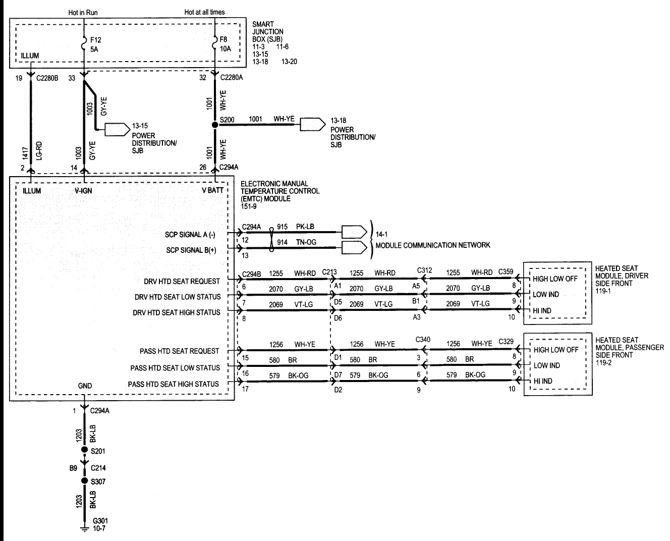 Fuses 8, 12 and 14 in the smart junction box all provide power to it in some manner.
