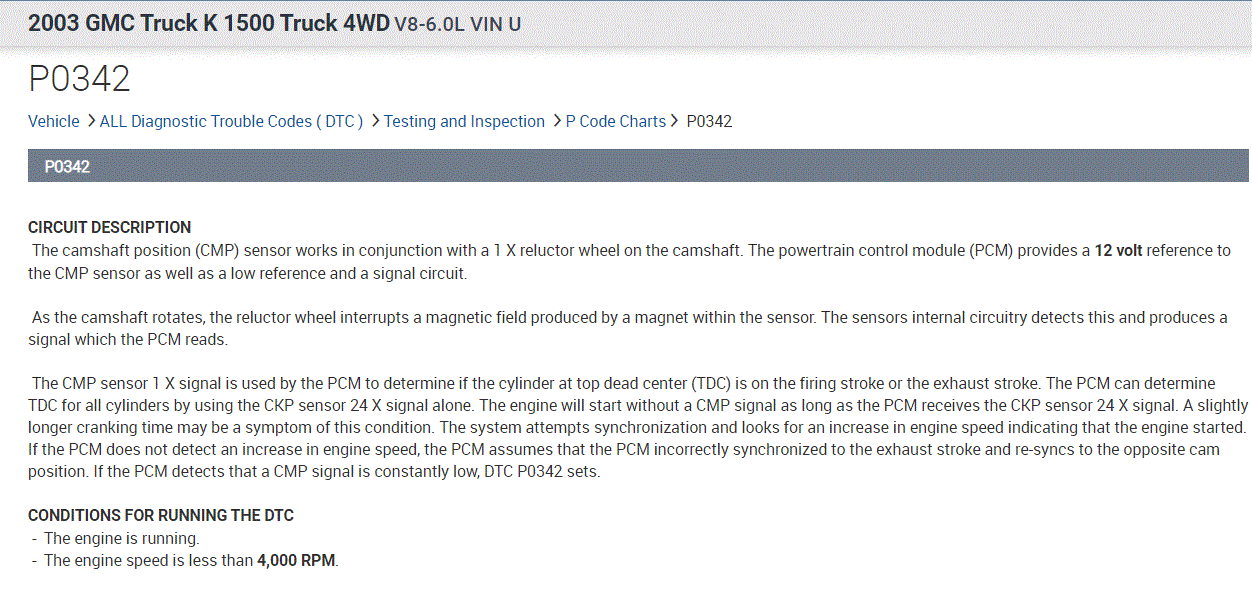 1st the new cam sensor that I swapped out when I changed the cup was bottoming out against the reluctor. So I put the old one back in and all was good for the moment.
