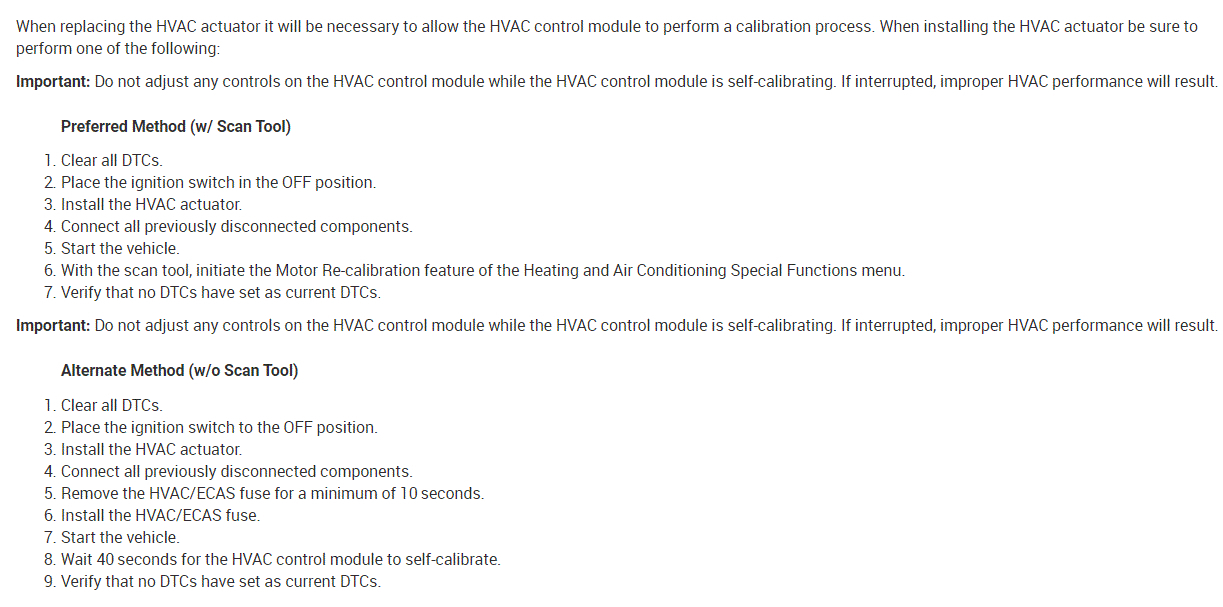 8. Wait 40 s for the HVAC control module to self-calibrate.