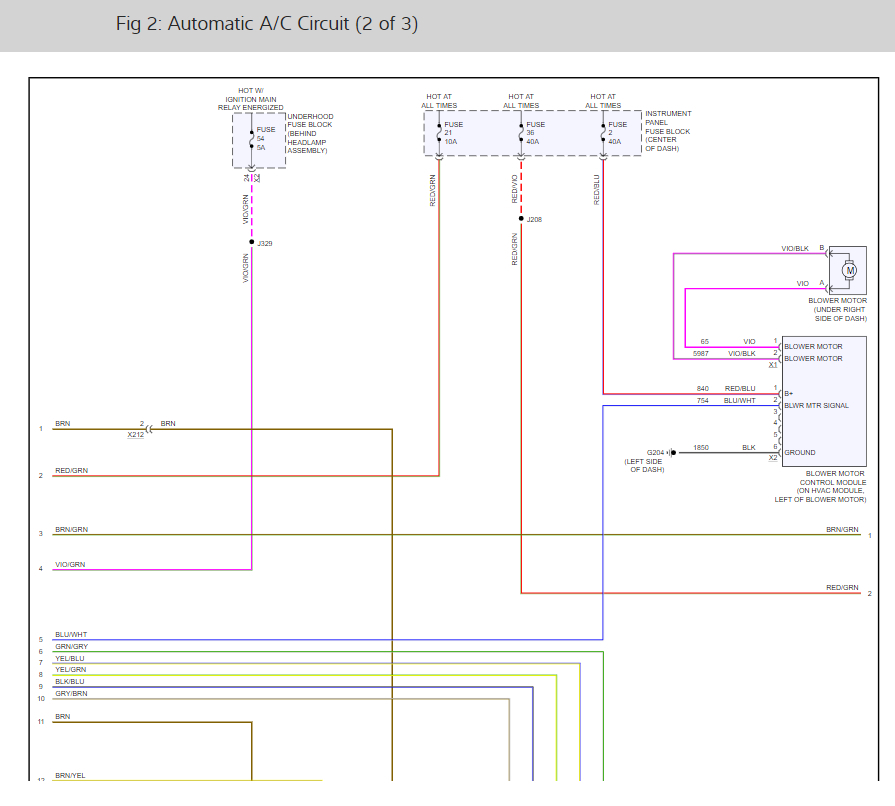 I have included the air conditioner and blower motor wiring diagrams so you can see how the system works and how to replace the HVAC controller and blower motor. Check out the diagrams (below). Please let us know what you find. We are interested to see what it is.