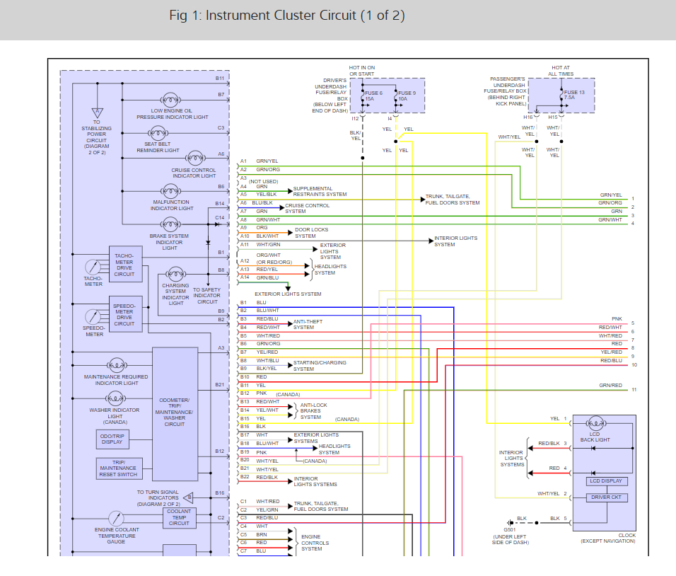There is a fuse #9 that needs to be checked. Here is a guide to help you check the fuse and the locations of the fuse and wiring diagram for the clock so you can see who it works: