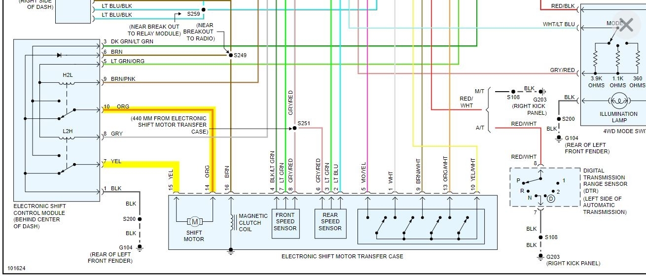 I attached a diagram and some other information for you. You need to test for voltage to the motor when commanding 2 or 4 wheel drive.