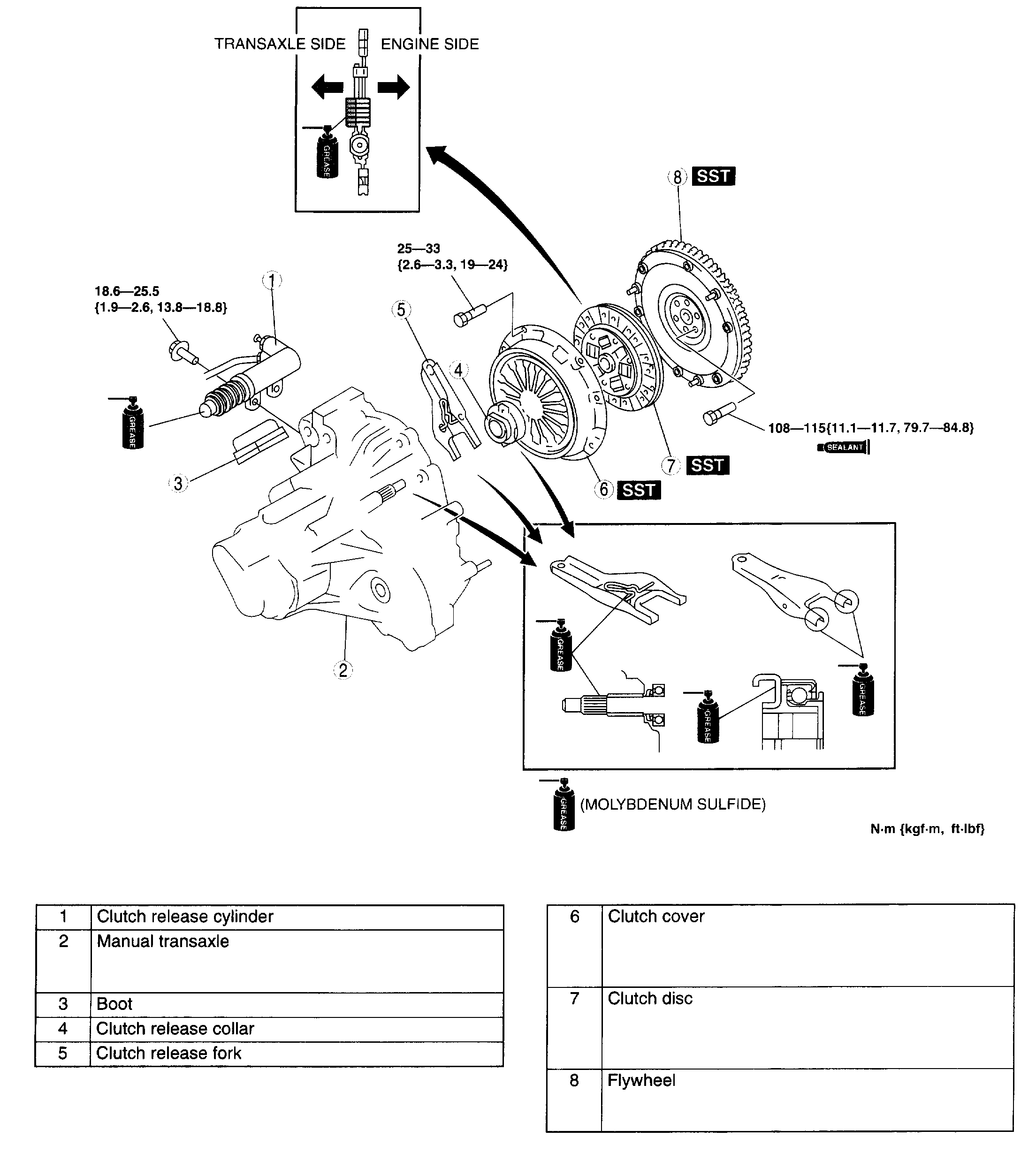 G35M-R manual transaxle models 108 - 115 Nm (11.1 - 11.7 kgf-cm, 79.7 - 84.8 ft. lbs.)