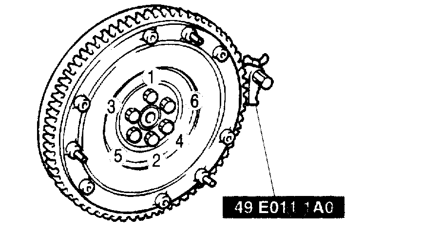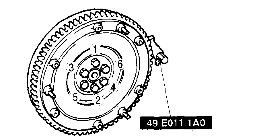 5. Gradually tighten the flywheel lock bolts in a crisscross pattern.