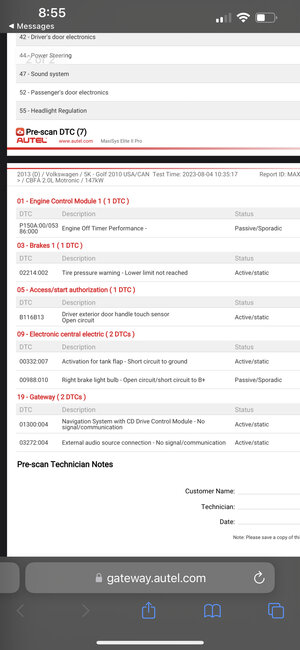 The other thing, and I’m not a mechanic, but when he was diagnosing my car and he had it hooked up and plugging the vin and stuff in, there were 3 options that popped up for it and none of them were my car. Two of them were Jetta's and the last one was a 2010 Golf, and idk if that’s how the software works or if it even matters. But it gave me some feelings of distrust, lol.
