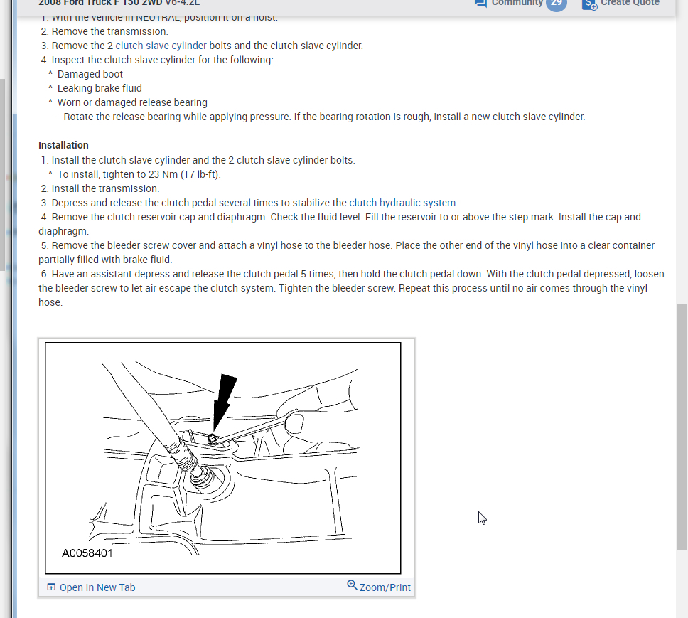 Run through this material and let us know if you have other questions. Also, I attached the info from the manual on the slave cylinder. I would recommend inspecting the friction disc and make sure that it is not contaminated with fluid. It will need to be replaced if it is.