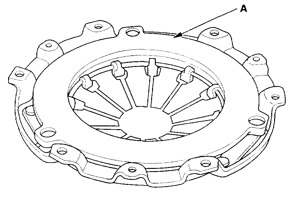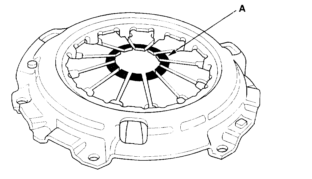 4. Inspect the fingers of the diaphragm spring (A) for wear at the release bearing contact area.